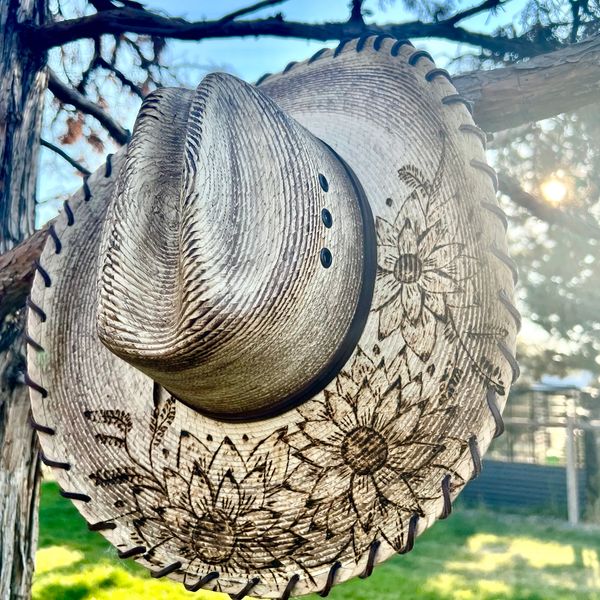 We can do a burn design on palm hats for summertime, or a wool hat for those colder months.
